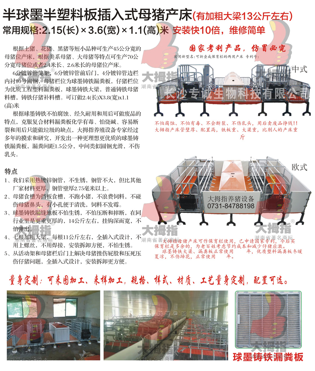 半球墨鑄鐵半復(fù)合板母豬產(chǎn)床